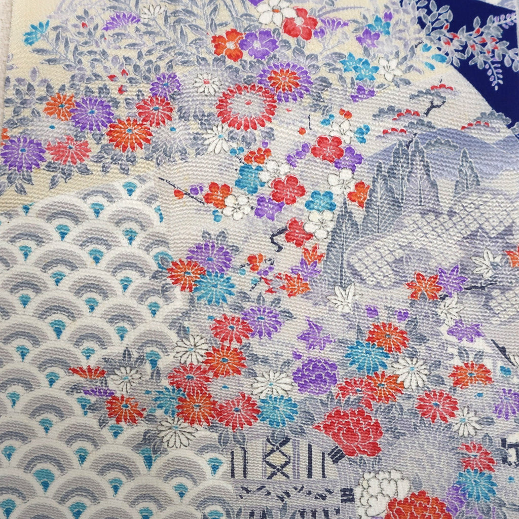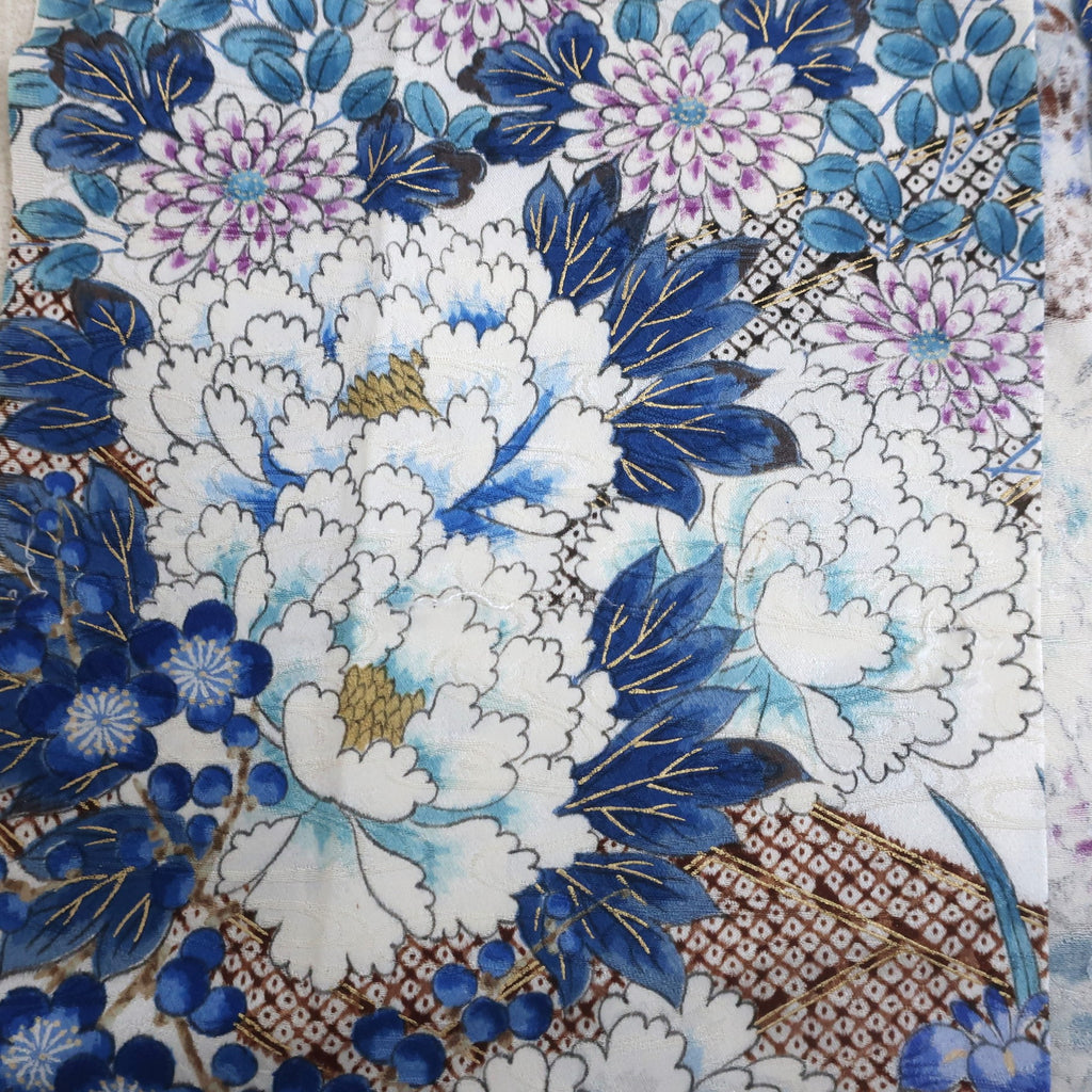 These are fabric pieces cut from pre-owned kimonos. Each piece is part of the original textile, with patterns that are not created by joining different fabrics.