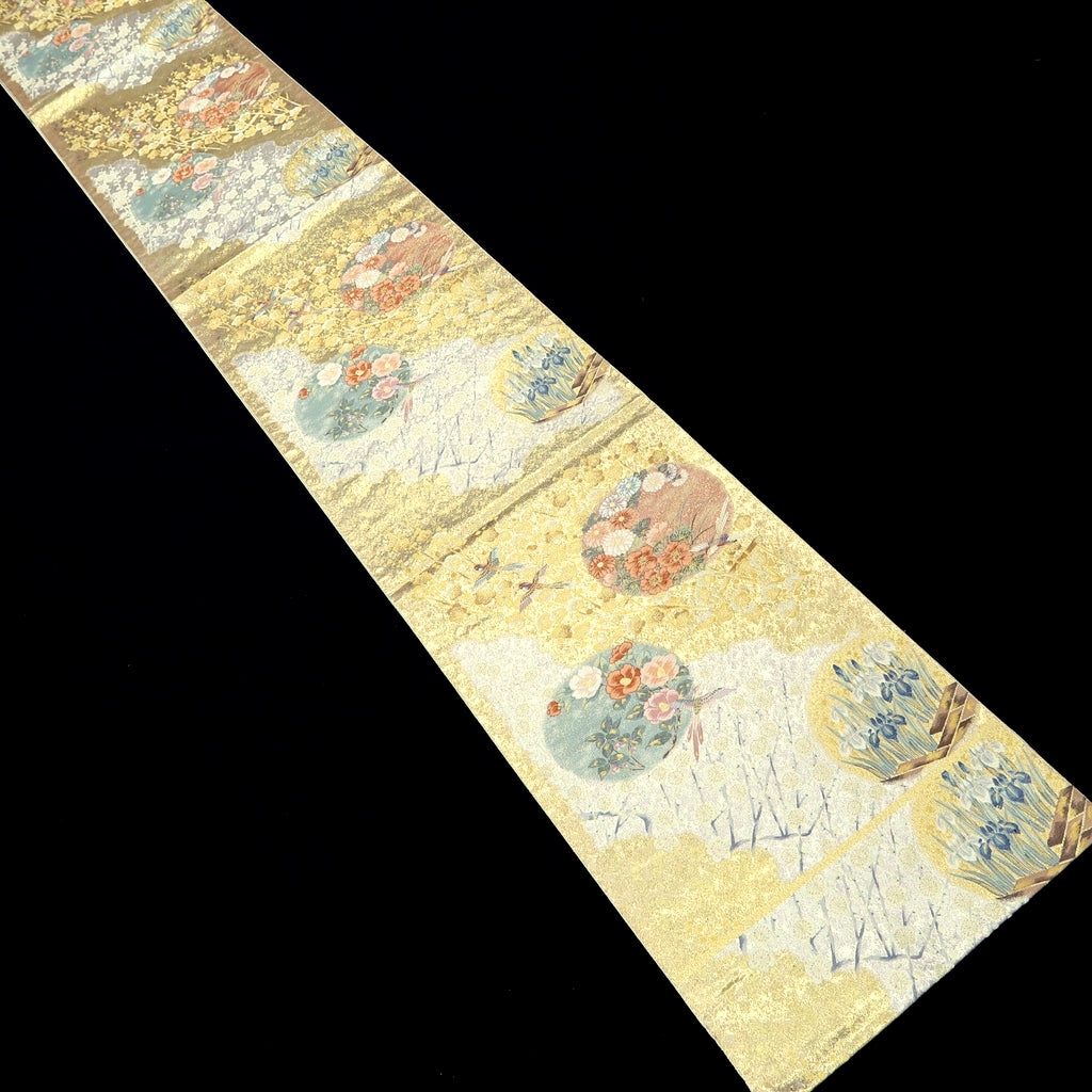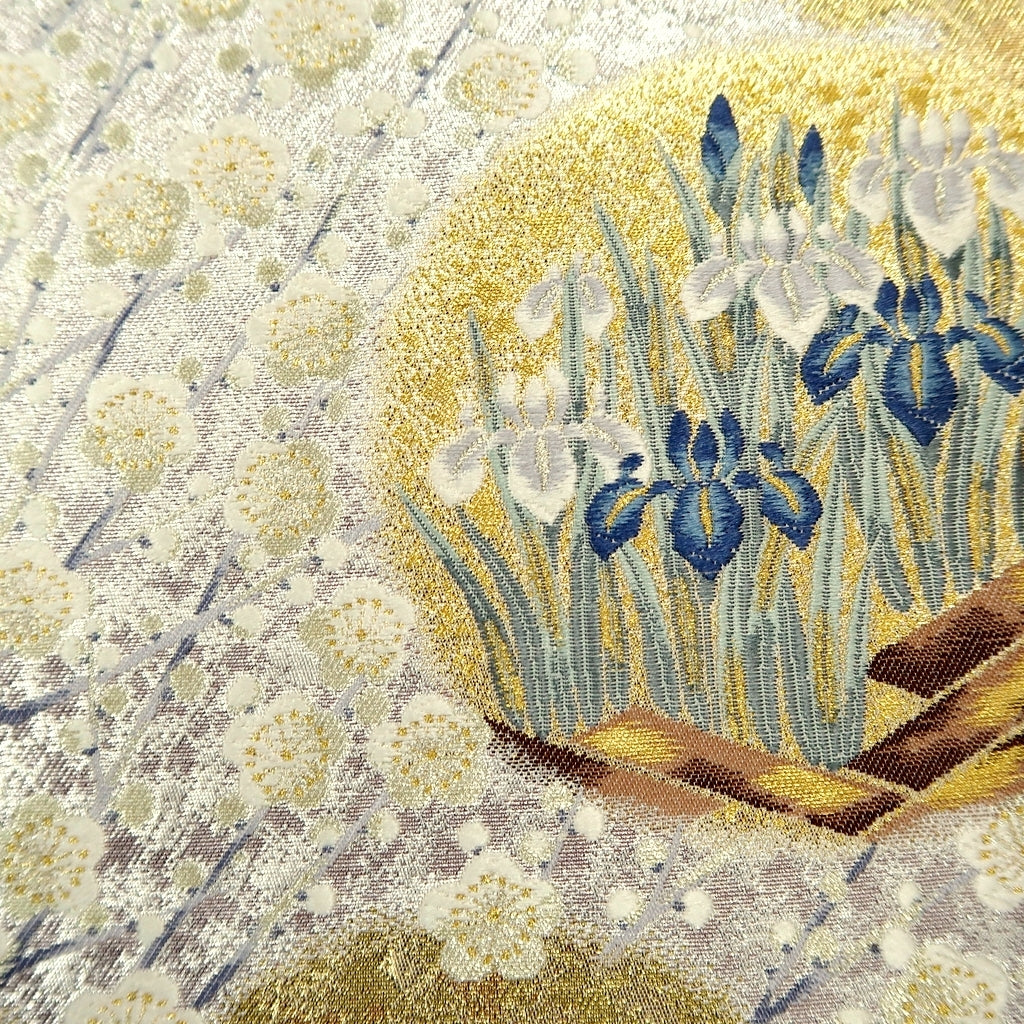 Fukuro Obi Gold Silver Birds Plum blossom Iris Silk BB217V3