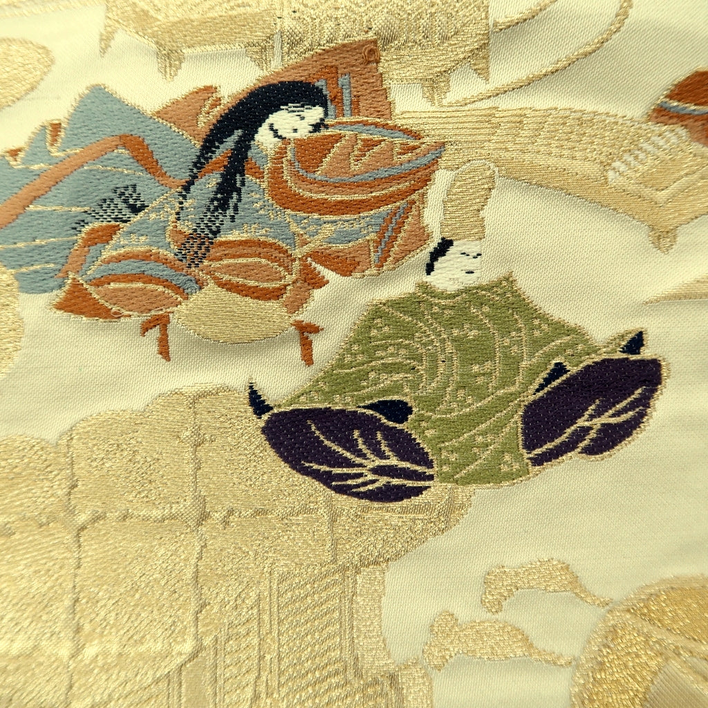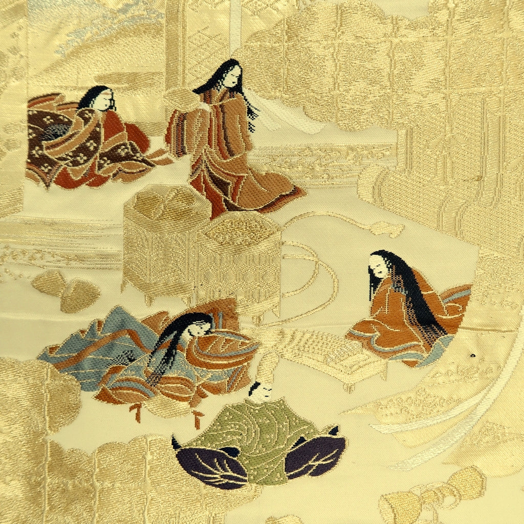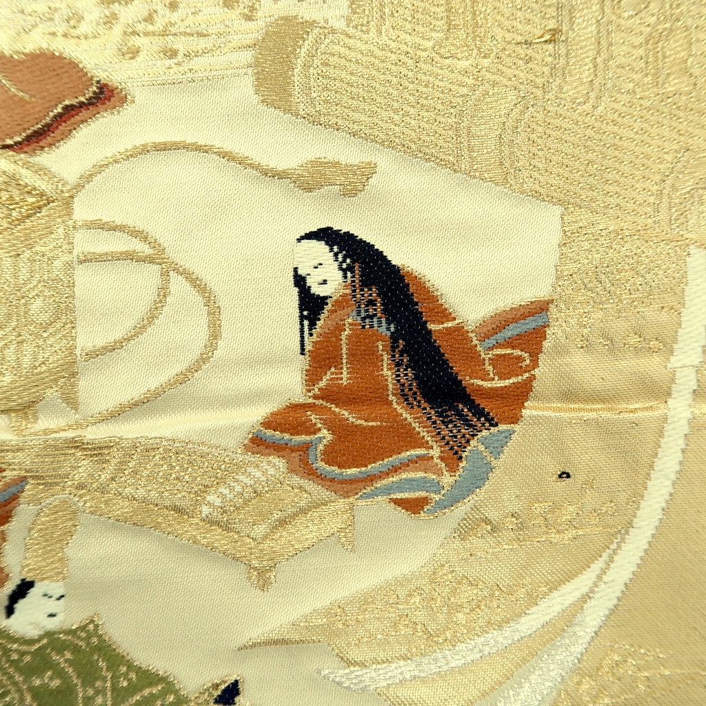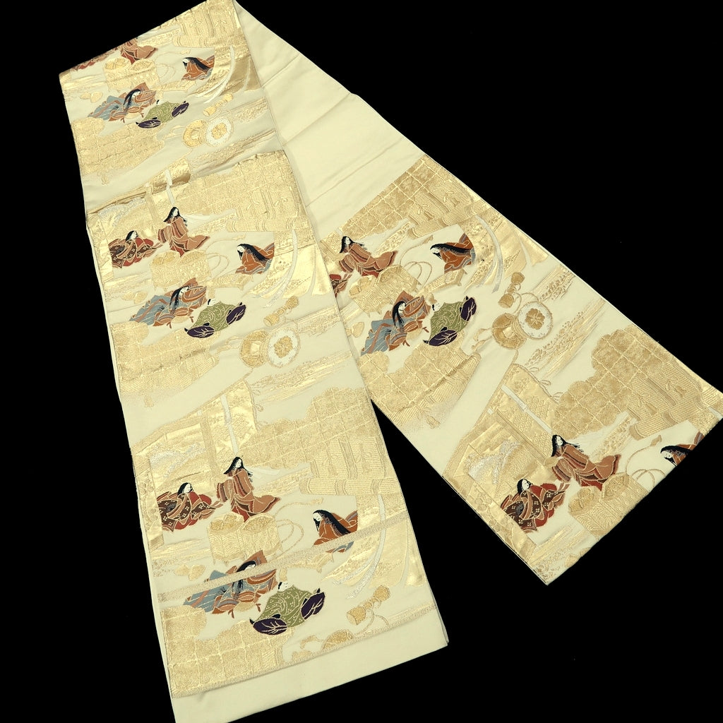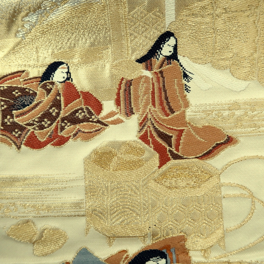 Fukuro Obi Vintage(1950-1980) White Gold Heian Princess Silk BB220V3