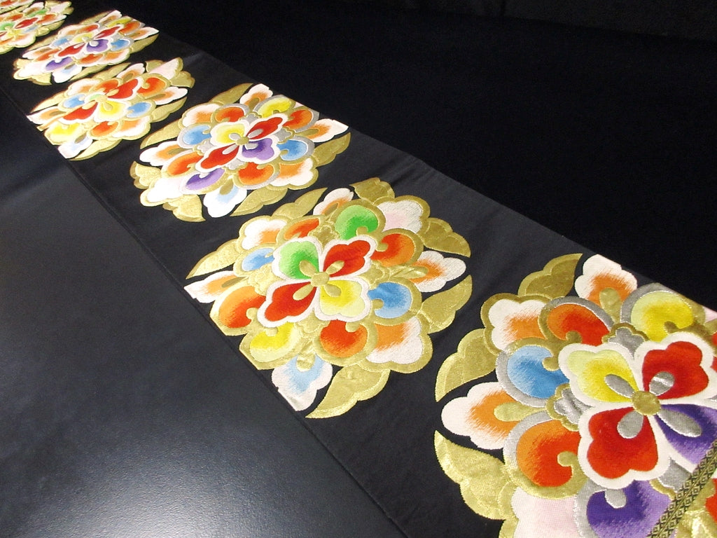 Fukuro Obi Vintage(1950-1980) Black Gold Flower Silk BB81W5
