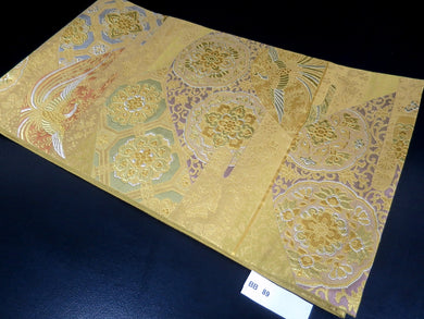 Fukuro Obi Vintage(1950-1980) Gold Crane Birds Chrysanthemum Silk BB99W6
