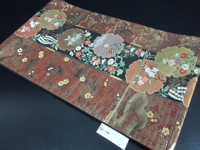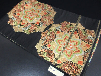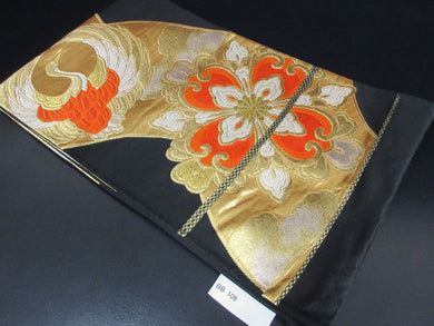 Fukuro Obi Vintage(1950-1980) Black Gold Flower Silk BB109W7