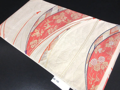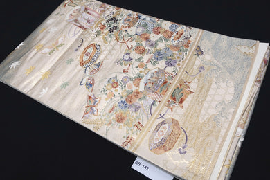 Fukuro Obi Vintage(1950-1980) Cream white Gold Mountain Cloud Landscape Silk BB113W7
