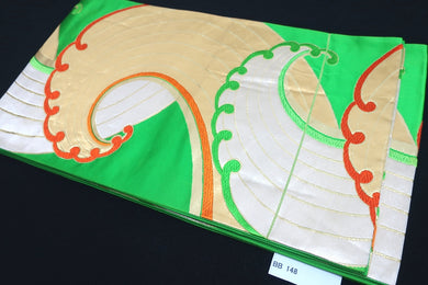 Fukuro Obi Vintage(1950-1980) Gold Green Orange Wave Silk BB145W9