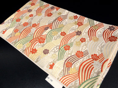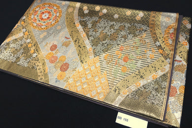Fukuro Obi Gold Silver Chrysanthemum Maple Leaf Silk BB155W1