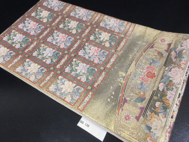 Fukuro Obi Gold Floral Windows Silk BB138W9