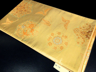 Fukuro Obi Gold Crane Birds Silk BB119W7