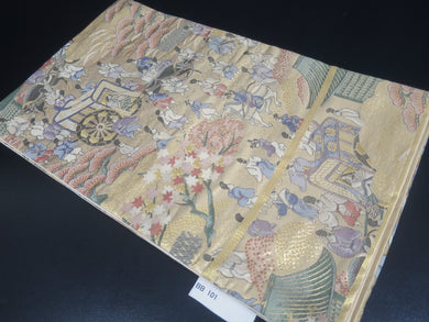 Fukuro Obi Vintage(1950-1980) Gold Heian Period Aristocrats Silk BB101W6
