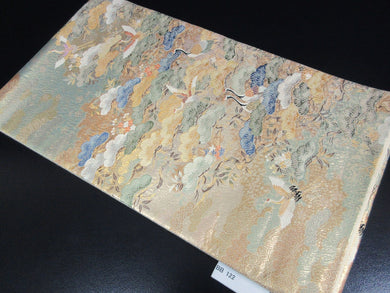 Fukuro Obi Gold Crane Birds Wisteria Pine Tree Silk BB156W1