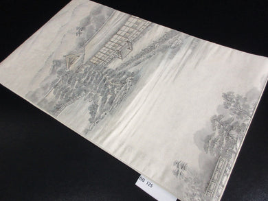 Fukuro Obi Gray Kyoto Imperial Palace Suibokuga Silk BB125W8