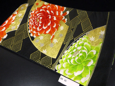Fukuro Obi Vintage(1950-1980) Black Gold Chrysanthemum Silk BB85W5