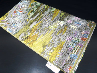 Fukuro Obi Gold Plum blossom Chrysanthemum Pine Tree Silk BB9W1