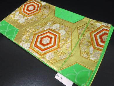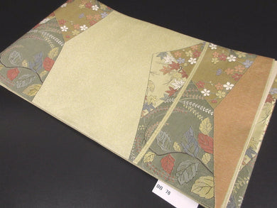 Fukuro Obi Vintage(1950-1980) Green Gold Chrysanthemum Kikkou Maple Leaf Silk BB30W2