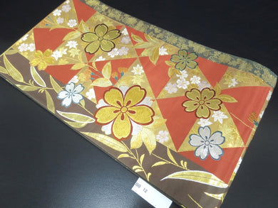 Fukuro Obi Gold Vermillion Cherry Blossom Silk BB12W1