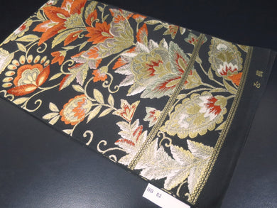 Fukuro Obi Vintage(1950-1980) Black Gold Flower Silk BB81W5