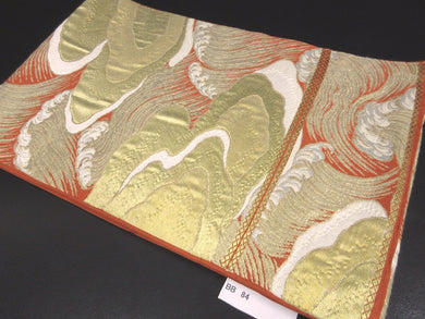 Fukuro Obi Vintage(1950-1980) Vermillion Gold White Wave Silk BB84W5