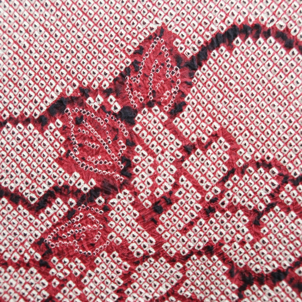 Haori Jacket Vintage(1950-1980) Red Shibori Peony Silk #10579C1