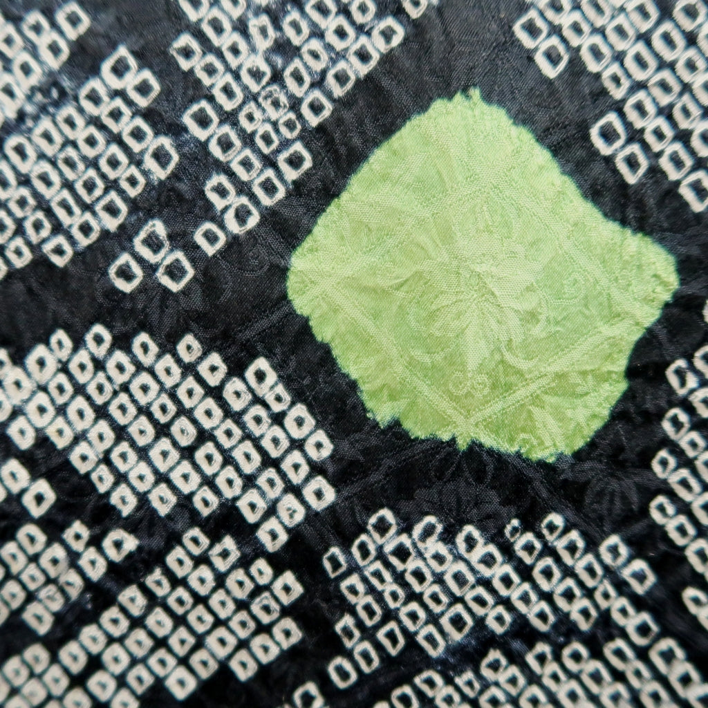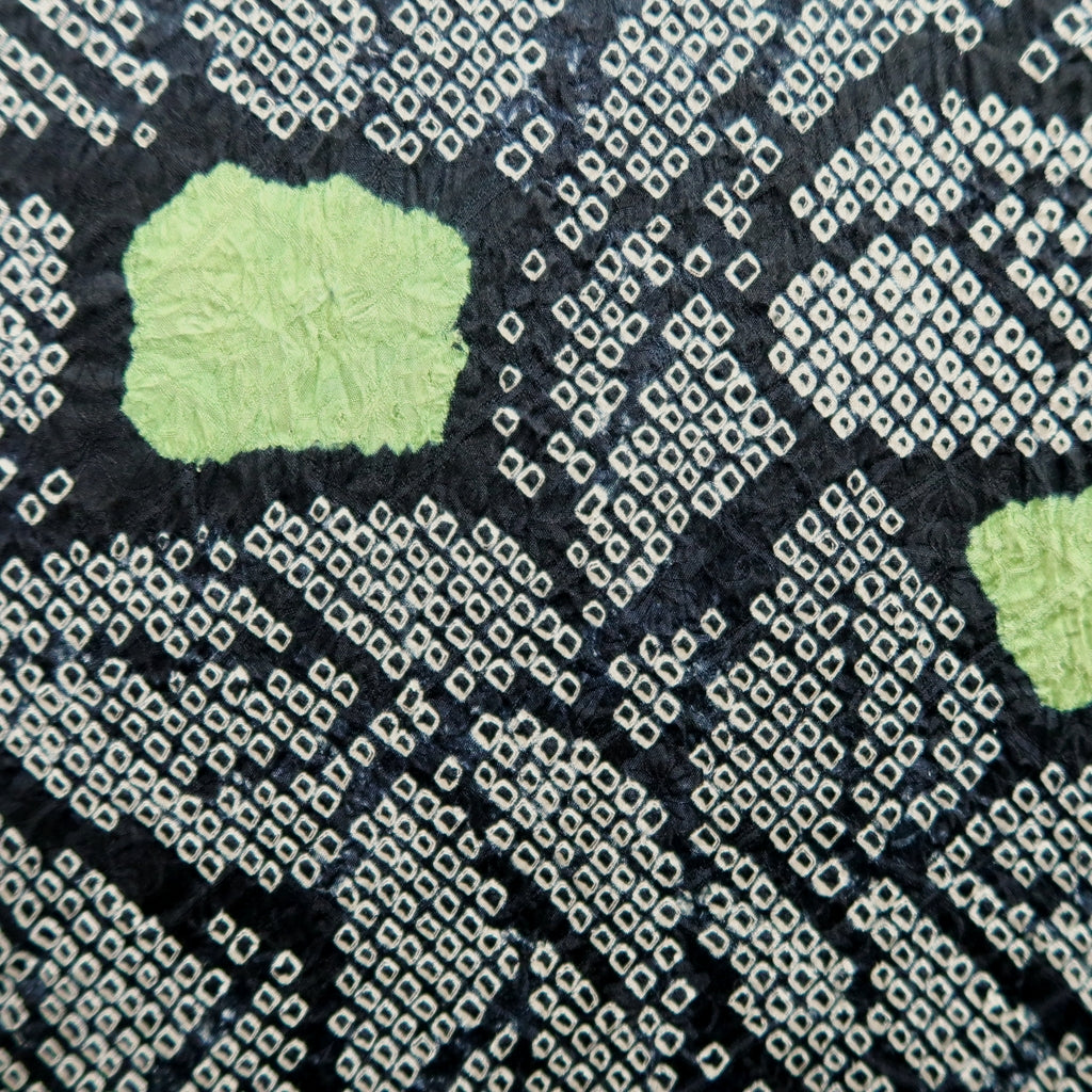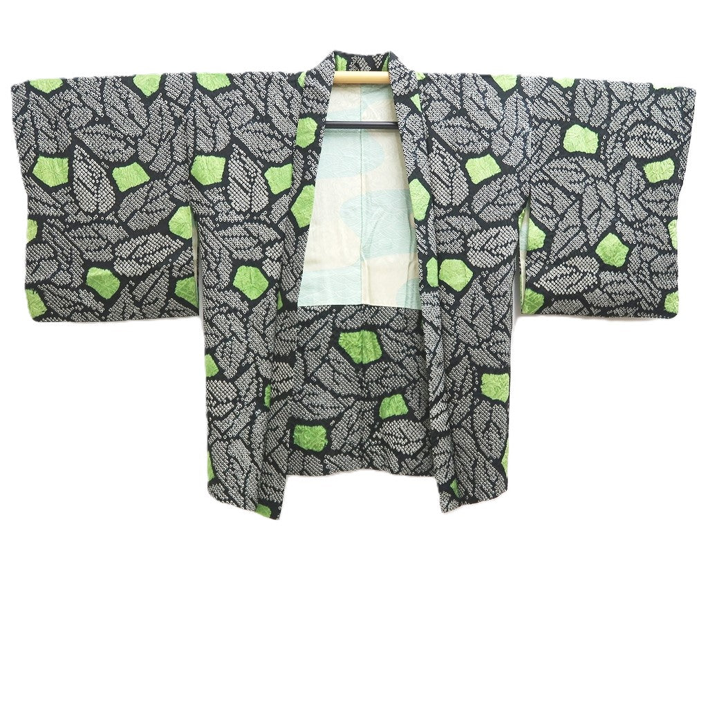 Haori Jacket Vintage(1950-1980) Black Green Shibori Leaves Silk #10581C1