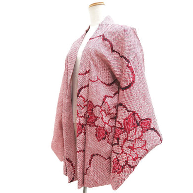 Haori Jacket Vintage(1950-1980) Red Shibori Peony Silk #10579C1
