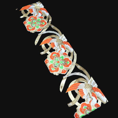 KK1490A2 Silk Kimono Fabric Vintage(1950-1980) Crane Birds Red 56.3x11.4in(143x29cm)
