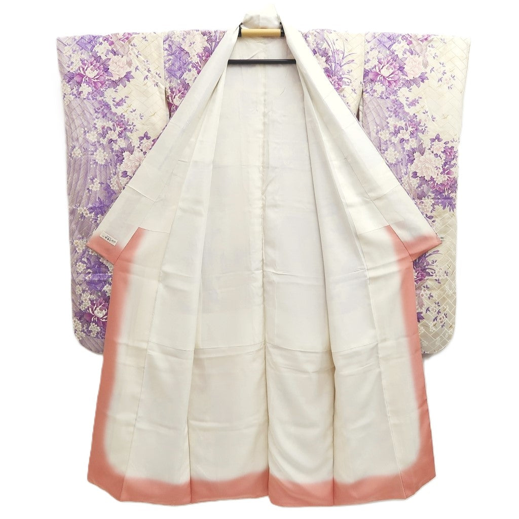 This exquisite furisode kimono embodies traditional Japanese elegance, featuring long, flowing sleeves that signify formal wear for special occasions. Crafted with meticulous attention to detail, it offers a graceful silhouette perfect for ceremonies or celebrations. Beyond fashion, its intricate design and vibrant patterns make it an exceptional piece for display as wall art, bringing cultural richness and refined beauty to any space.