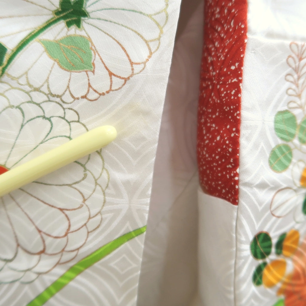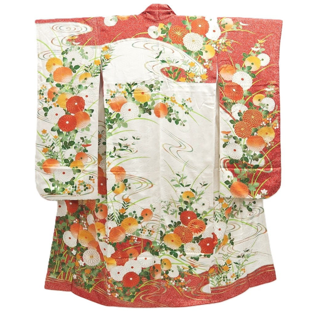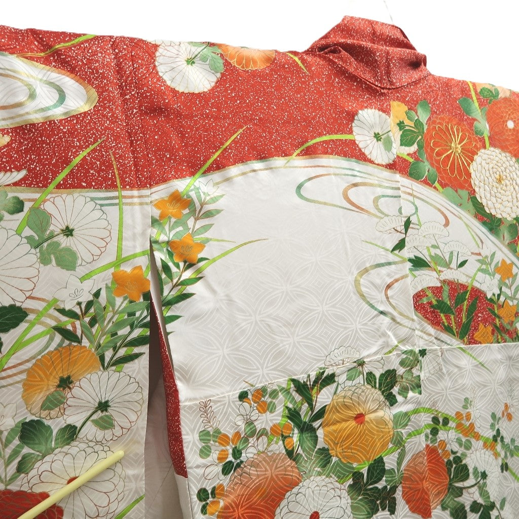 Furisode Red White Embroidery Chrysanthemum Silk #10560B4