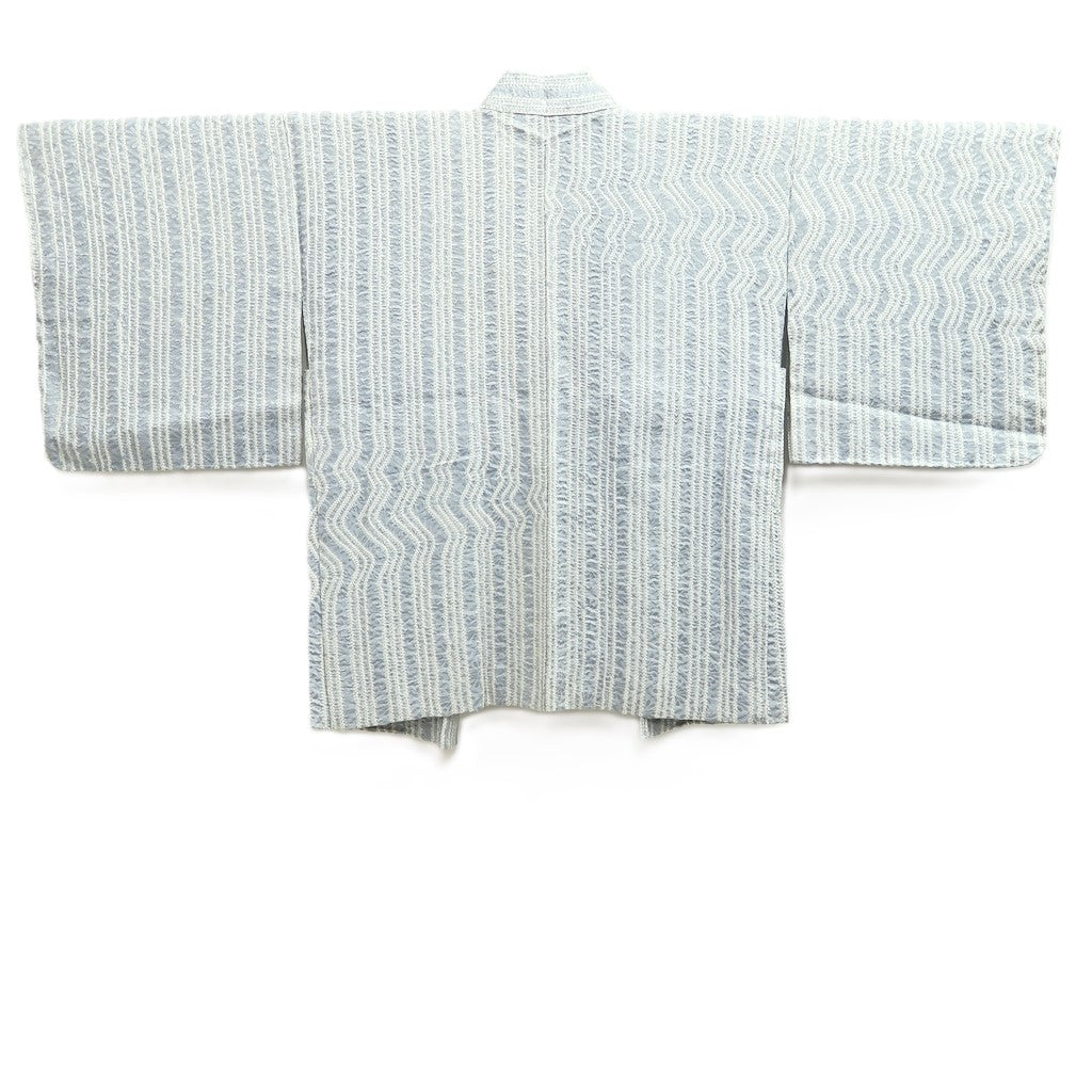This vintage haori exemplifies timeless Japanese craftsmanship, serving both as an elegant traditional garment and a captivating piece of wall art. Its intricate design and rich cultural heritage bring sophistication to any setting, whether worn or displayed, offering a unique blend of history and aesthetic beauty.