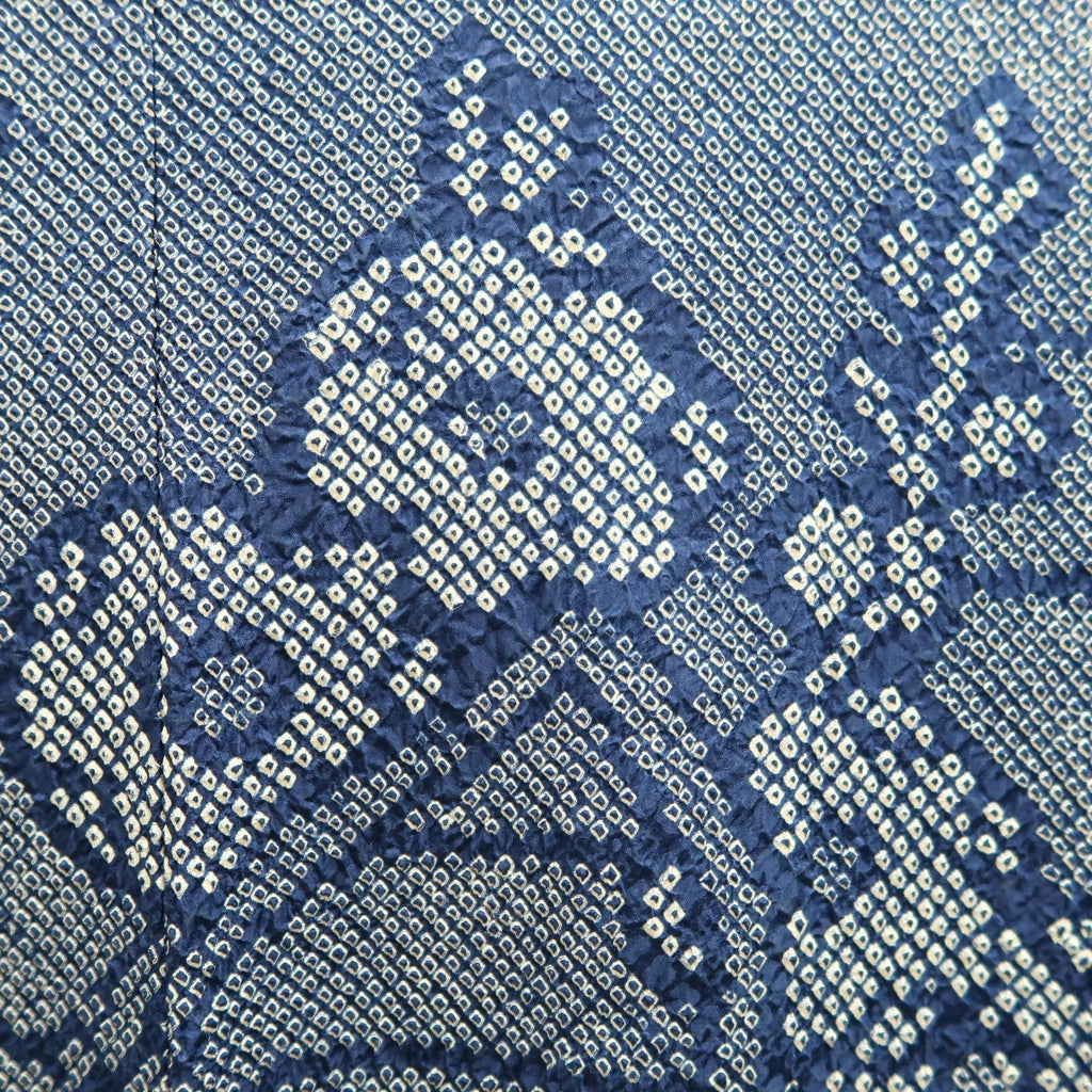 The fabric is a mid-weight Silk, smooth-textured with a slightly puffy and lustrous finish typical of hand tied tie-dye (shibori).