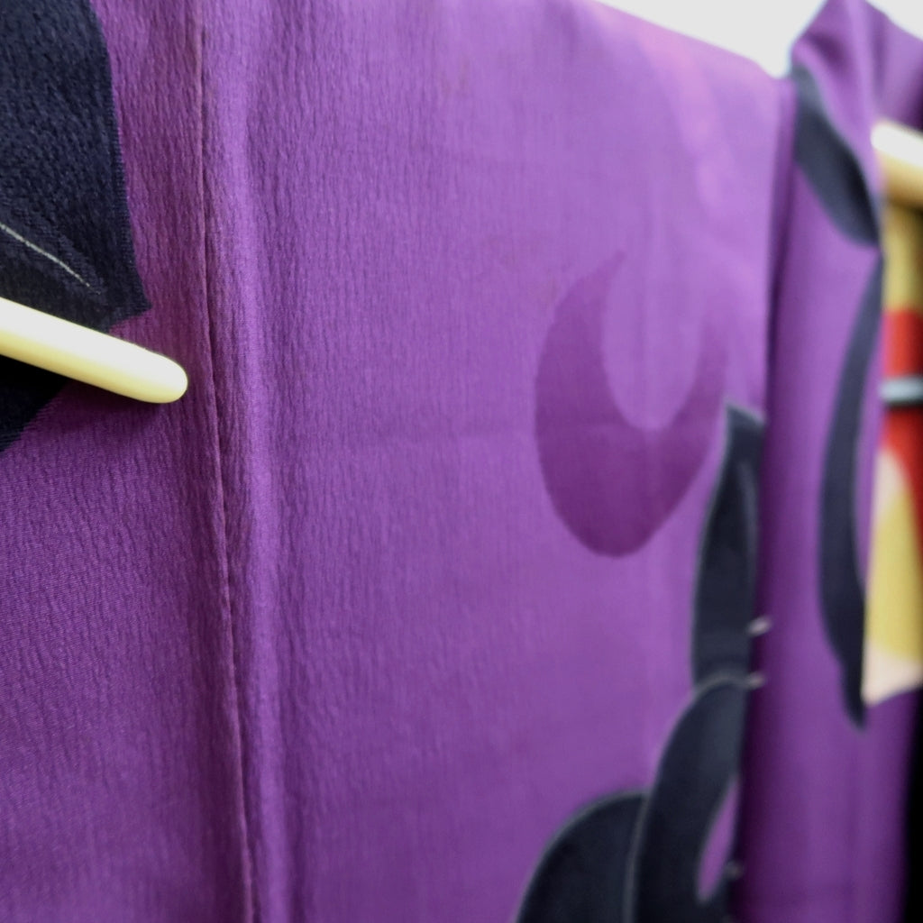 This vintage haori exemplifies traditional Japanese textile artistry with its refined construction and elegant design. Its timeless appeal makes it a beautiful garment for wear, while its intricate patterns and quality fabric also transform it into an exceptional piece of wall art. Perfect for those who value heritage craftsmanship and sophisticated aesthetics.