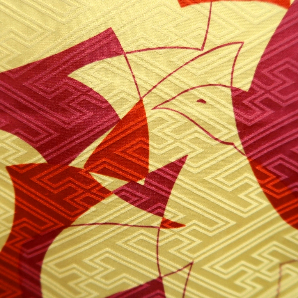 The fabric is a mid-weight Silk, smooth-textured with a lustrous finish typical rinzu fabric.
