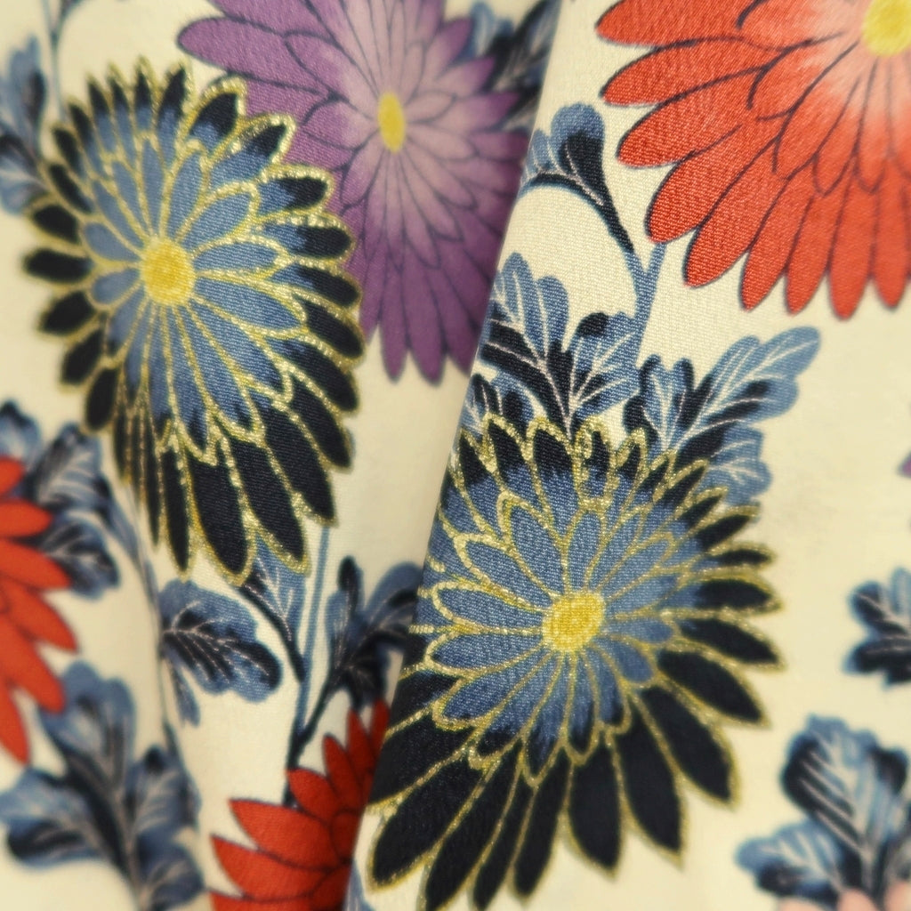 The fabric is a mid-weight Silk, smooth-textured with a lustrous finish typical rinzu fabric.