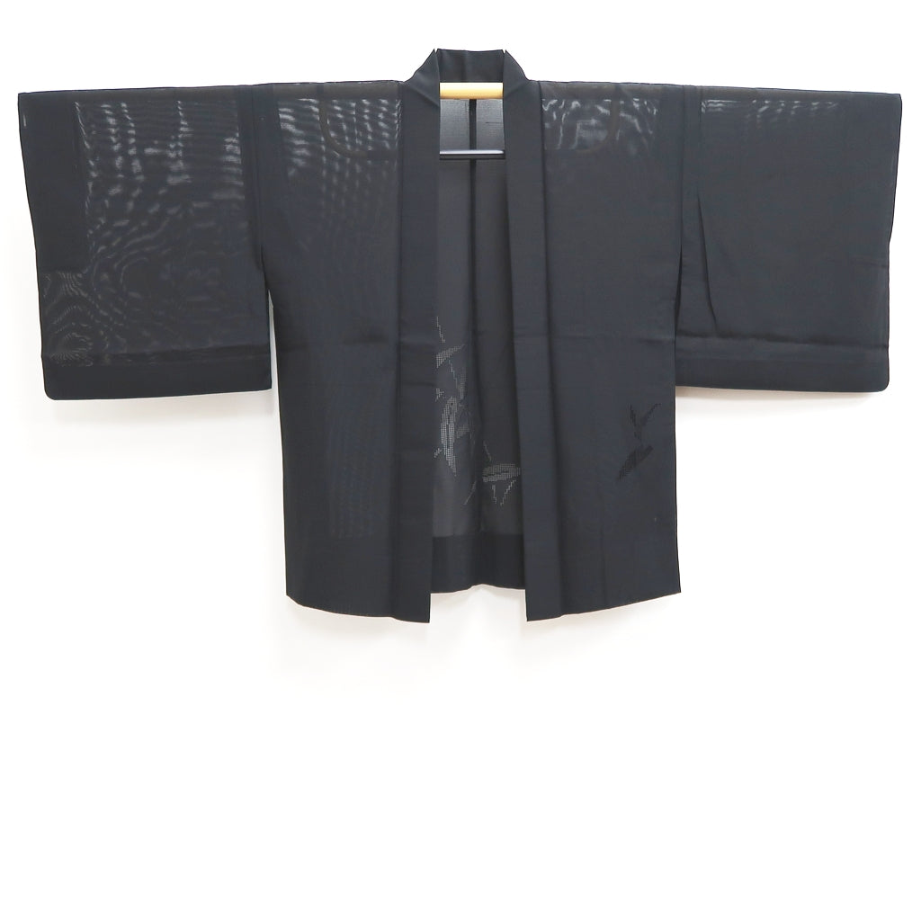 This vintage haori, crafted from delicate sheer fabric, embodies the elegance of traditional Japanese attire. Its refined texture and timeless design make it an exquisite piece for both wear and display. Perfectly suited for showcasing cultural artistry, it adds a sophisticated touch to any wall or collection.