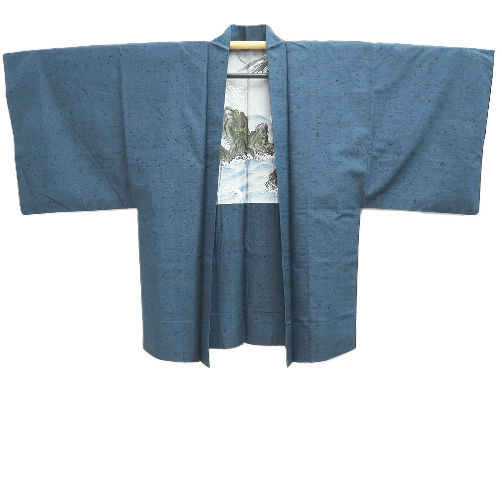 Men's Haori Vintage(1950-1980) Dark Blue Curling Wave Silk #10646C4