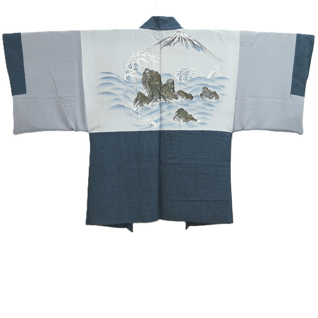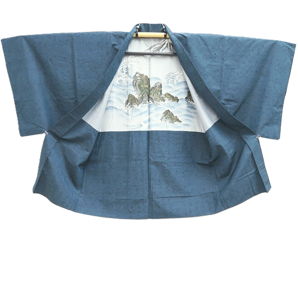 This vintage men's haori features a striking Curling Wave design on its lining, capturing the dynamic beauty of traditional Japanese art. Perfect for wearing as a traditional costume, it adds both elegance and cultural depth to any outfit. When not in use, its detailed artwork makes it an exceptional wall display piece, bringing a touch of powerful natural artistry into your living space. Don't miss the chance to own this unique blend of fashion and fine art.