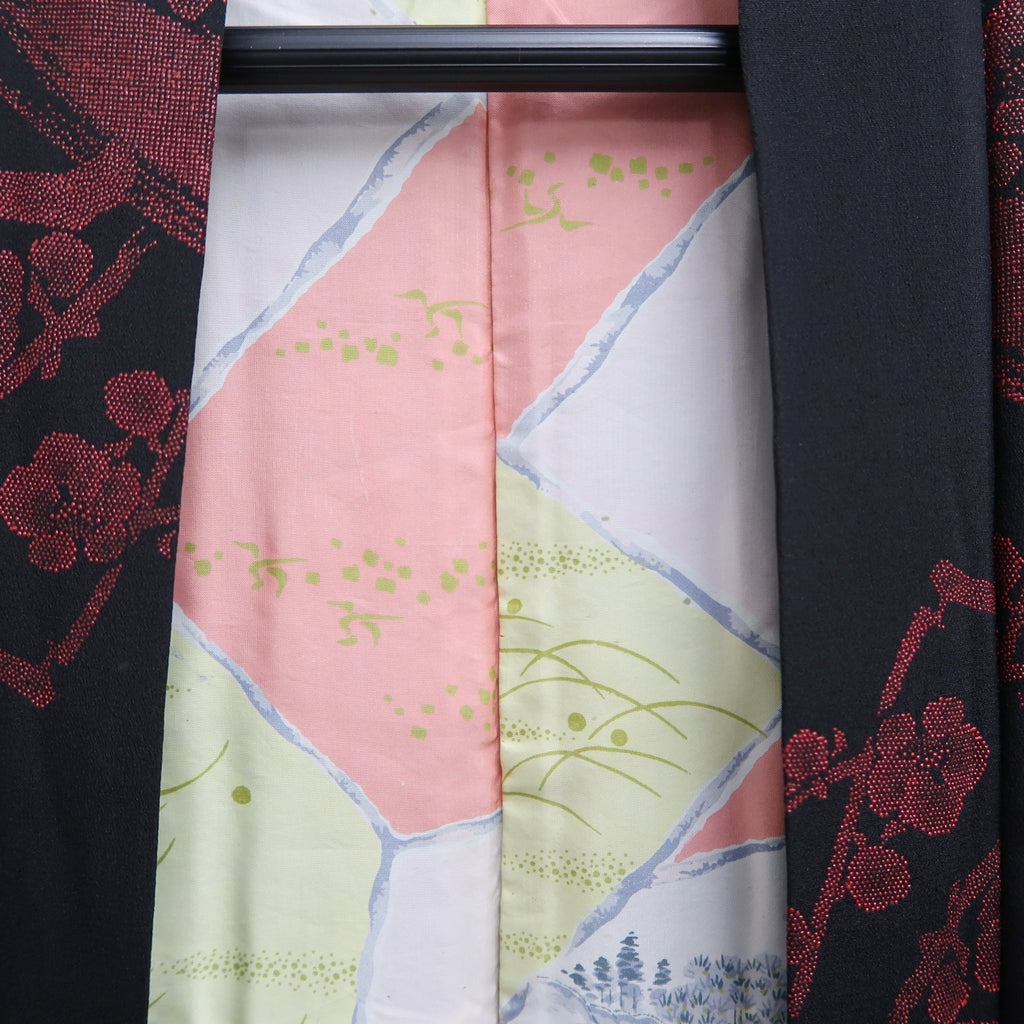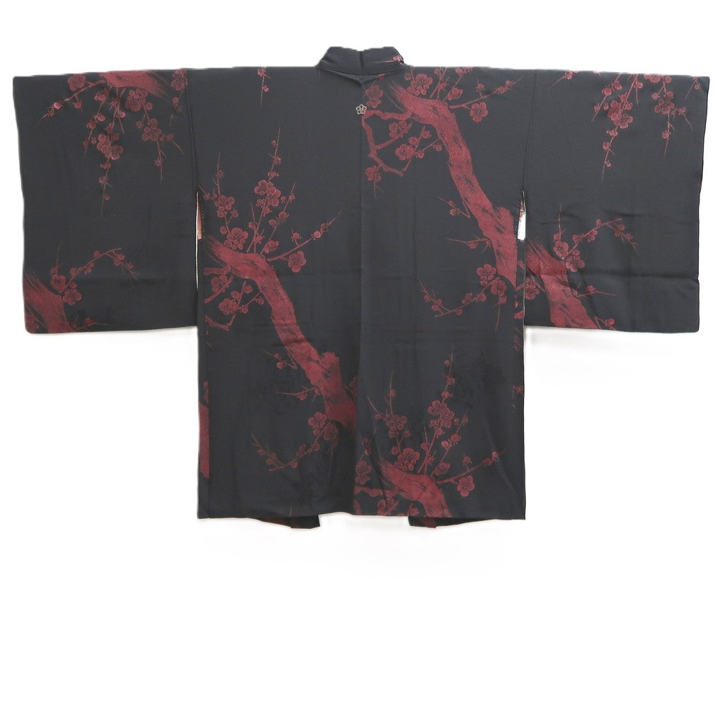 Haori Jacket Vintage(1950-1980) Black Plum blossom Branch Silk #10672C5