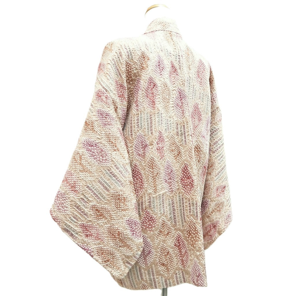 This haori showcases refined Japanese craftsmanship with proportions based on classical standards. Suitable for formal occasions, cultural events, or everyday traditional wear, it also serves as a display piece thanks to its appealing fabric, colors, and details-ideal for those who value wearable heritage and interior aesthetics.