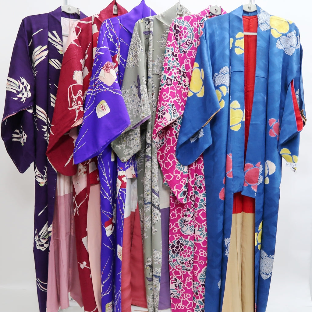Bundle 6pcs Silk Antique Kimono Robe Dress Wholesale Bulk Free Shipping #768