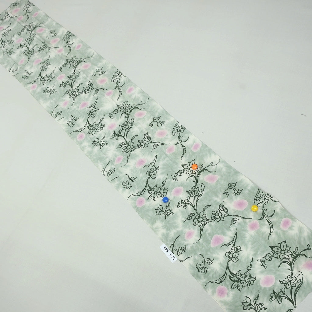 KK1135B3 Silk Kimono Fabric Vintage(1950-1980) Flower Light Green 73.6x12.2in(187x31cm)