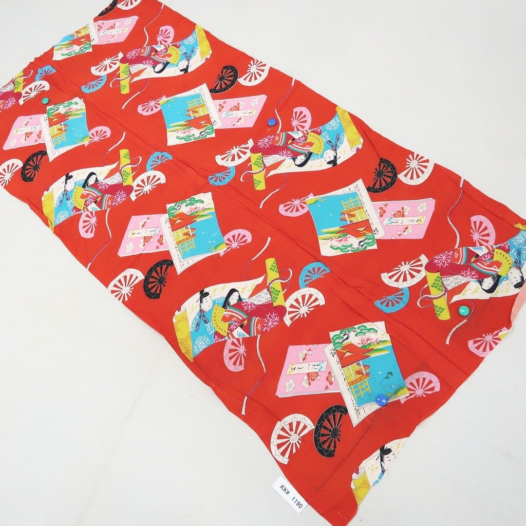 • Load image into Gallery viewer, KK1190B4 Rayon Kimono Fabric Vintage(1950-1980) Heian Princess Vermillion 51.6x24.8in(131x63cm)