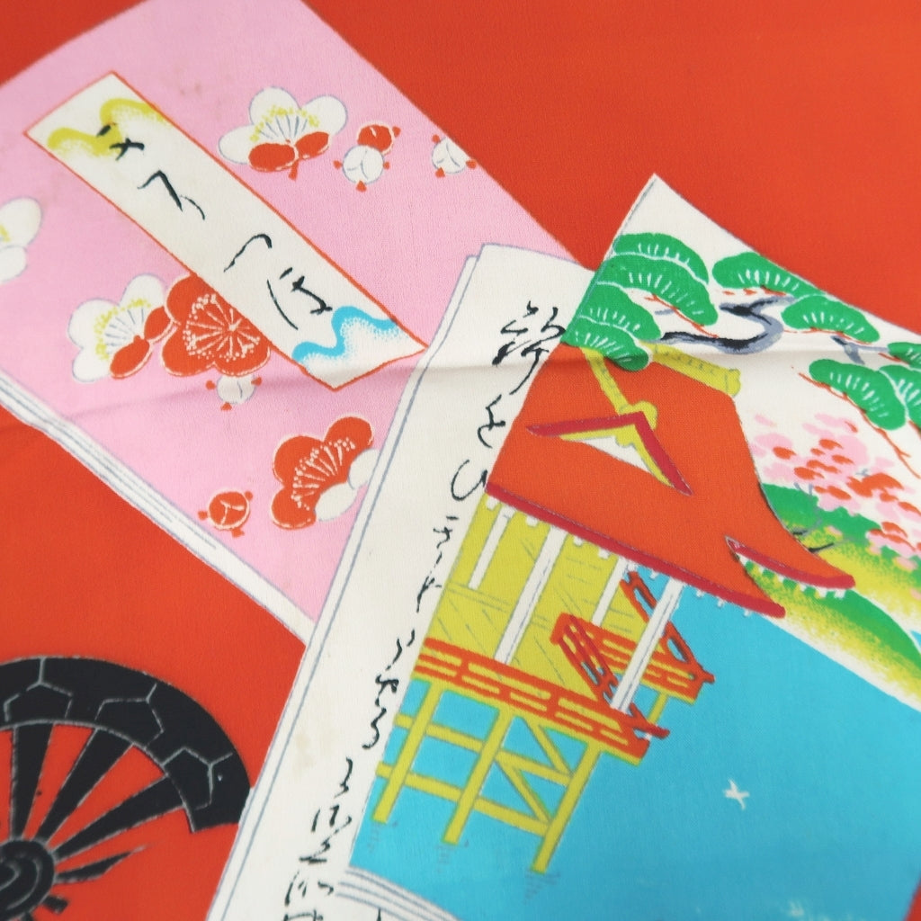 KK1190B4 Rayon Kimono Fabric Vintage(1950-1980) Heian Princess Vermillion 51.6x24.8in(131x63cm)