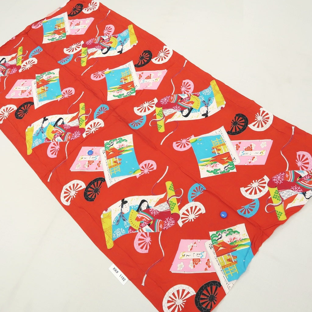 • Load image into Gallery viewer, KK1192B4 Rayon Kimono Fabric Vintage(1950-1980) Heian Princess Vermillion 53.1x26.4in(135x67cm)