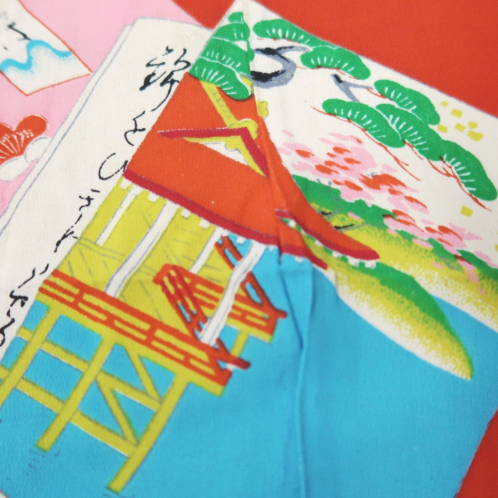 This is a piece of fabric that has been cut from an used kimono. (Single fabric. Not any pieces are sewn together to make the patterns.)