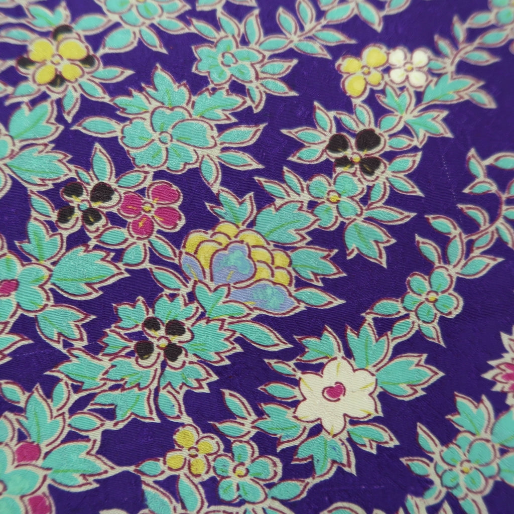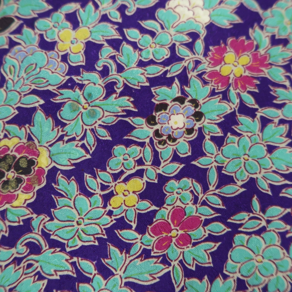KK1200B4 Silk Kimono Fabric Vintage(1920-1950) Flower Rinzu Purple 50.0x13.4in(127x34cm)
