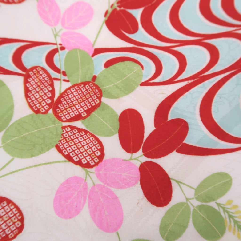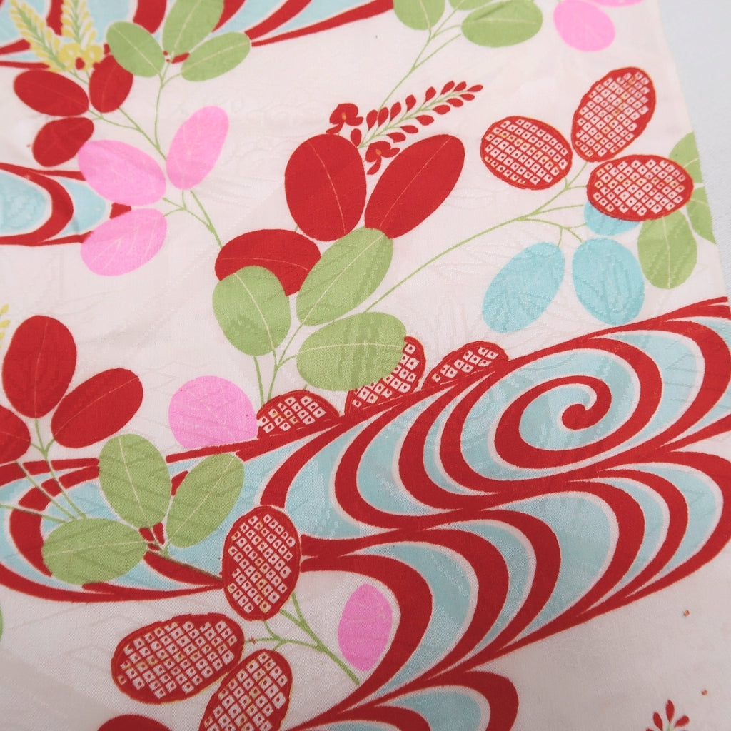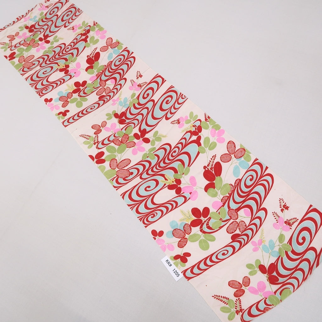 KK1205B5 Silk Kimono Fabric Vintage(1920-1950) Flower Pinkish White Red 53.1x12.6in(135x32cm)