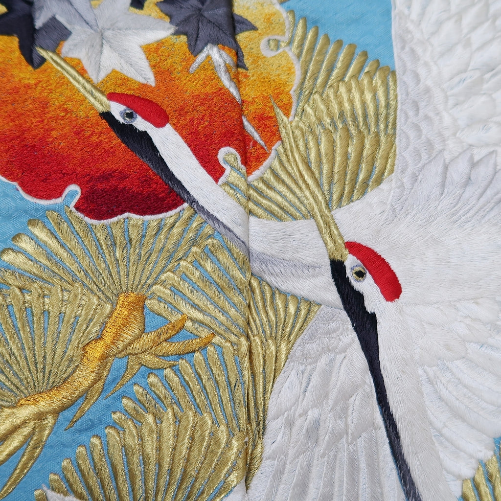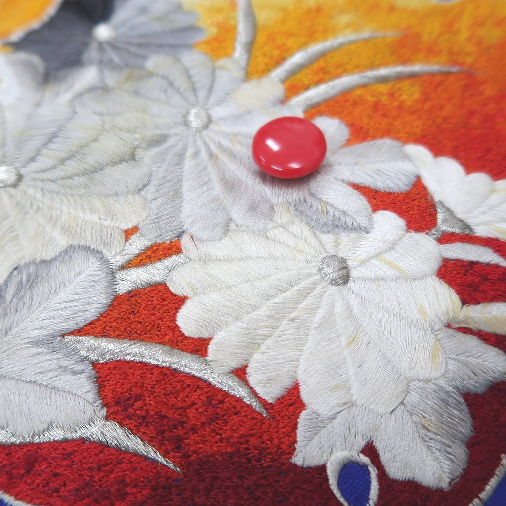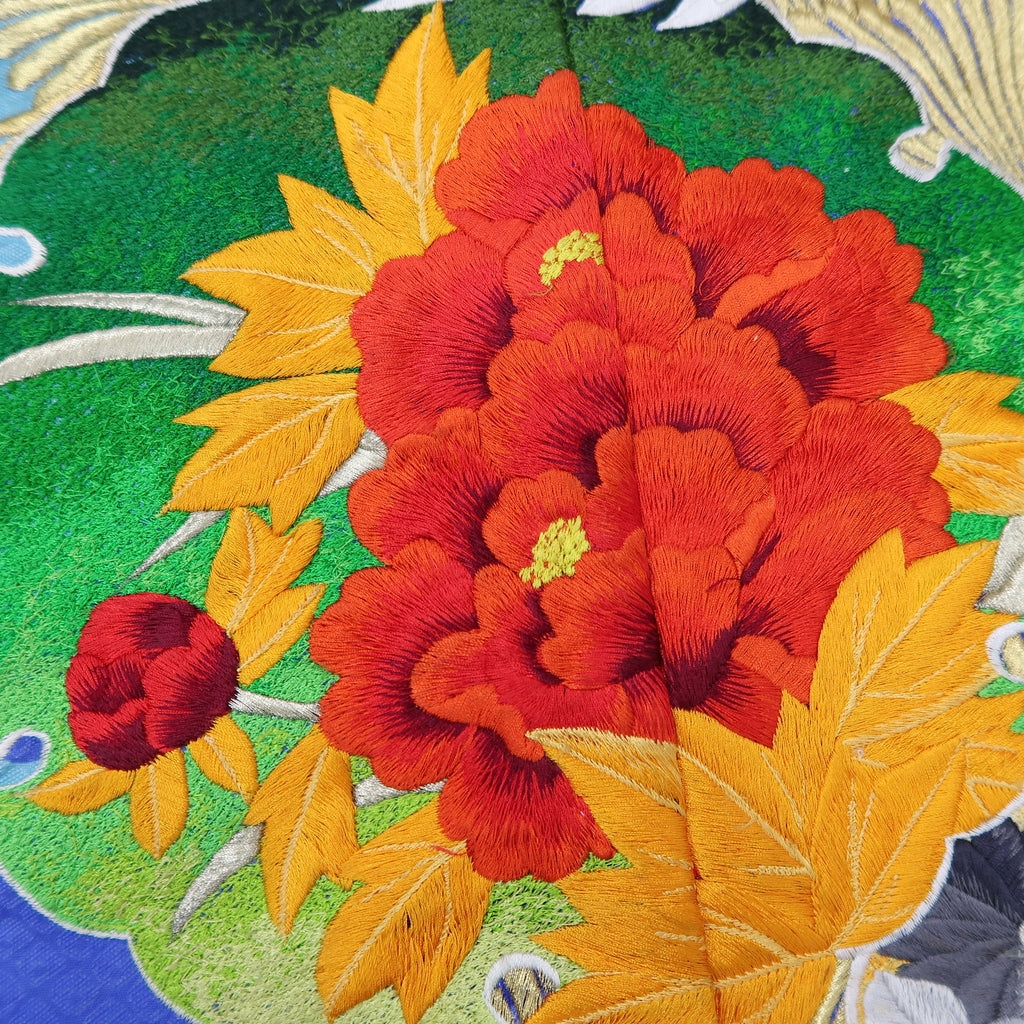 Two pieces are sewn together to make the patterns. This is a piece of fabric that has been cut from an used kimono.