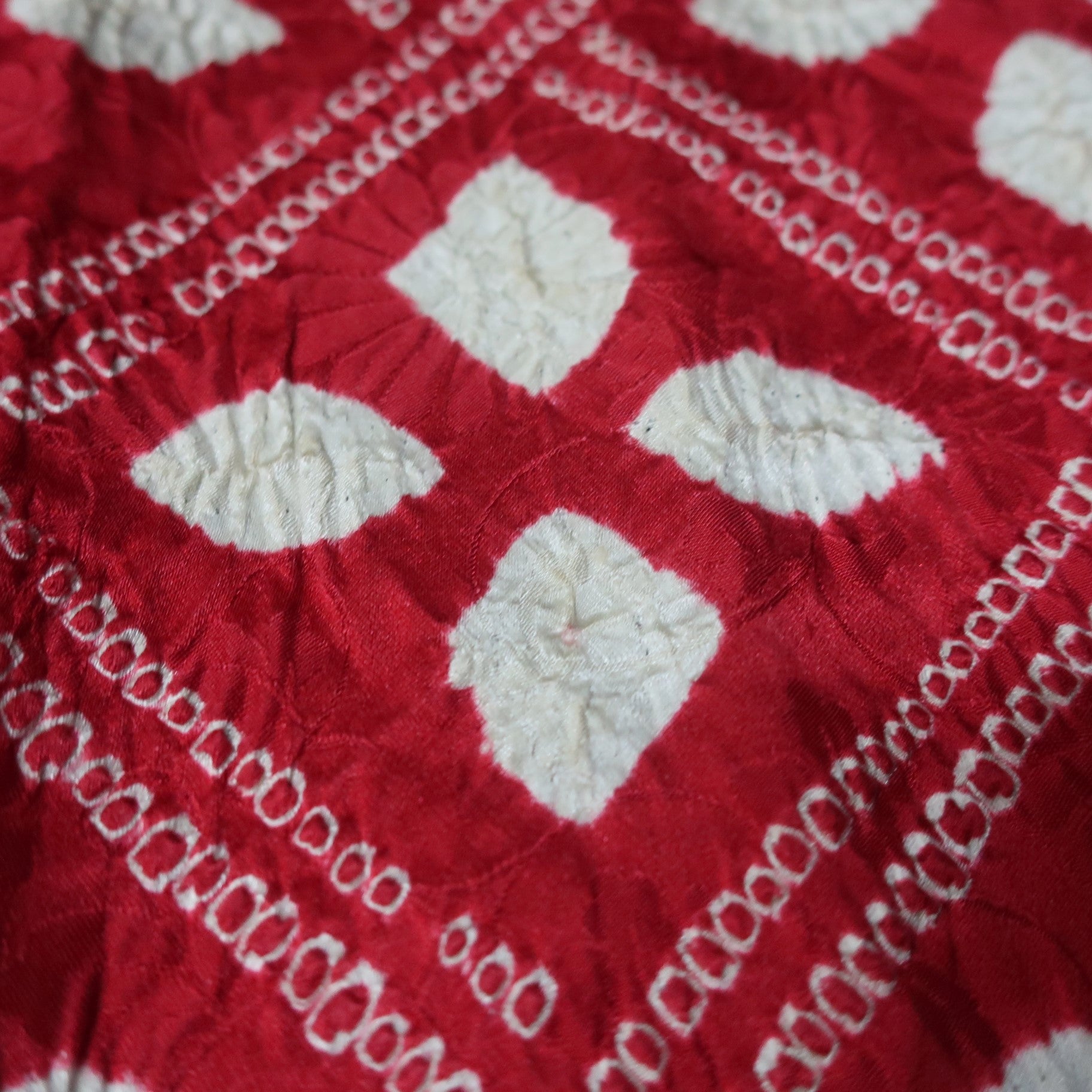 KK1402B8 Silk Kimono Fabric Vintage(1950-1980) Shibori Red 76.8x12.6in(195x32cm)