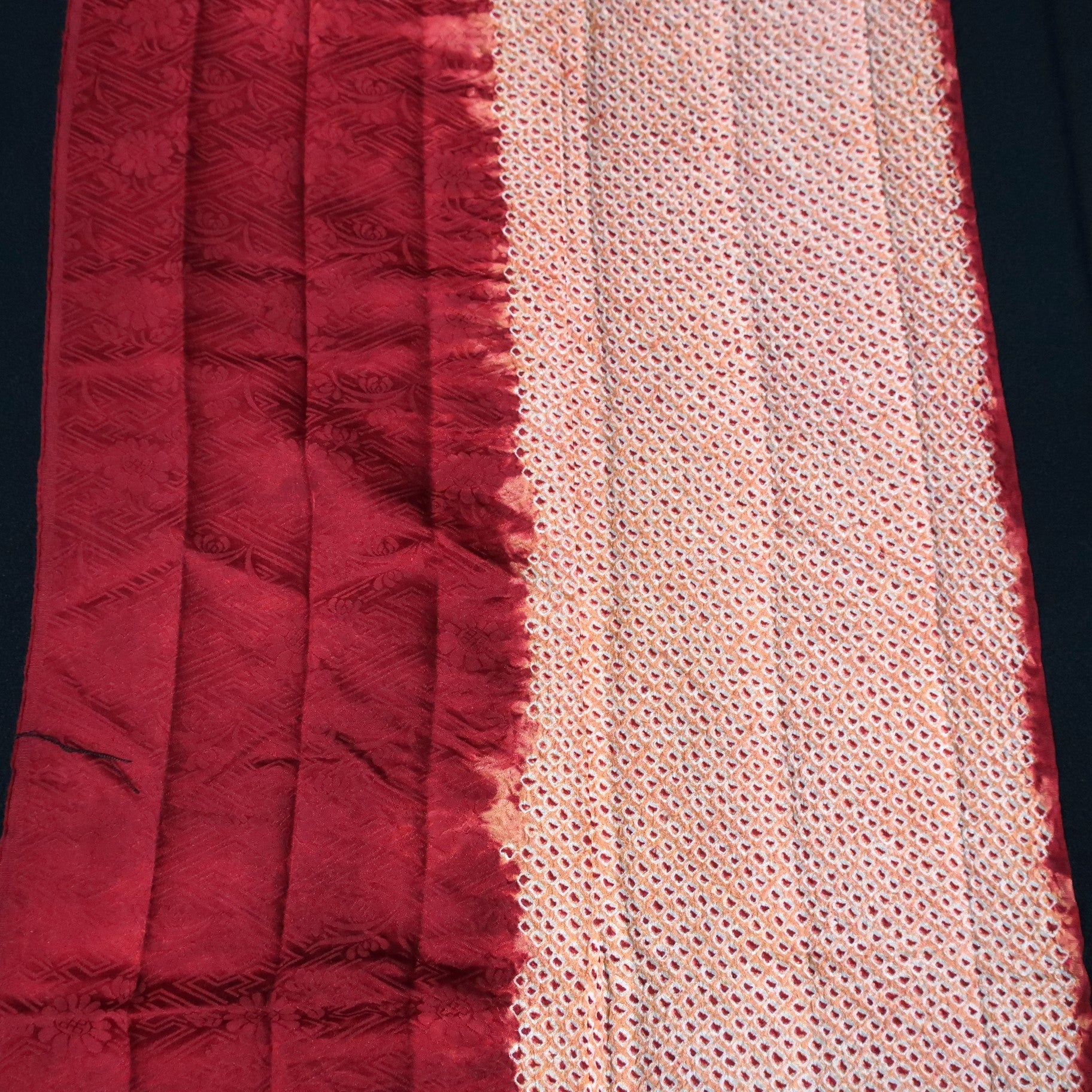 KK1404B8 Silk Kimono Fabric Vintage(1950-1980) Shibori Red 79.1x12.6in(201x32cm)