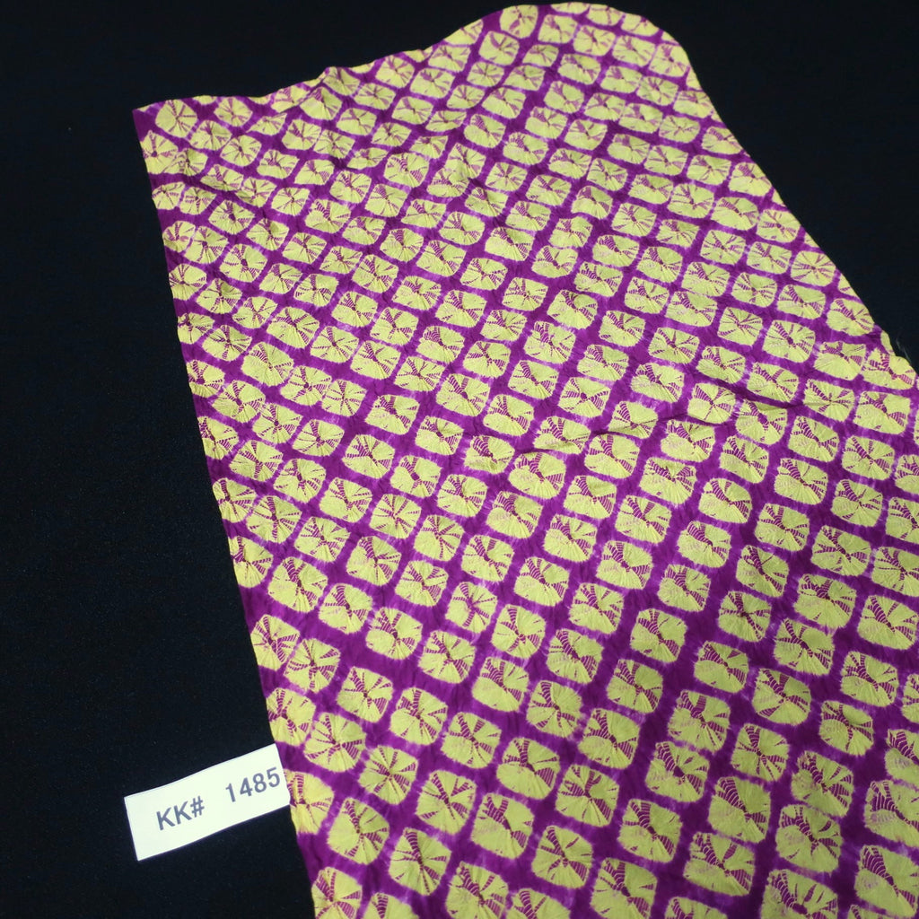 KK1485A2 Silk Kimono Fabric Vintage(Pre-1920) Shibori Purple Yellow 50.8x11.4in(129x29cm)