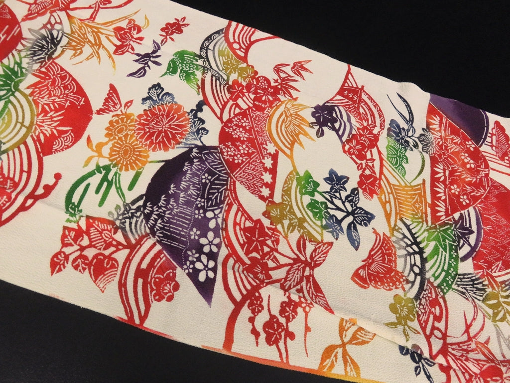 This is a piece of fabric that has been cut from an used kimono. (Single fabric. Not any pieces are sewn together to make the patterns.)