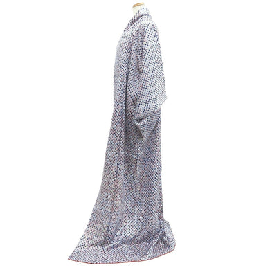 Kimono Vintage(1950-1980) Red Light Blue Shibori Silk #10265E4